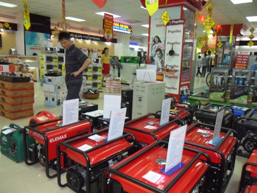 Máy phát điện chạy bằng xăng và dầu diesel chủ yếu sản xuất lắp ráp trong nước, ngoài ra còn có máy nhập khẩu nguyên chiếc từ Trung Quốc, Thái Lan, Nhật Bản... Giá bán tùy theo chủng loại và thương hiệu, chẳng hạn: Goldsun 3,4 - 10,8 triệu đồng/chiếc, Elemax Nhật Bản 19,5 - 55,3 triệu đồng/chiếc, Sanda 4,7 - 13,5 triệu đồng/chiếc, Honda 7,4 - 84,6, Hyundai 6,2 - 18,4 triệu đồng/chiếc, Kama 4,5 - 11,5 triệu đồng/chiếc...
